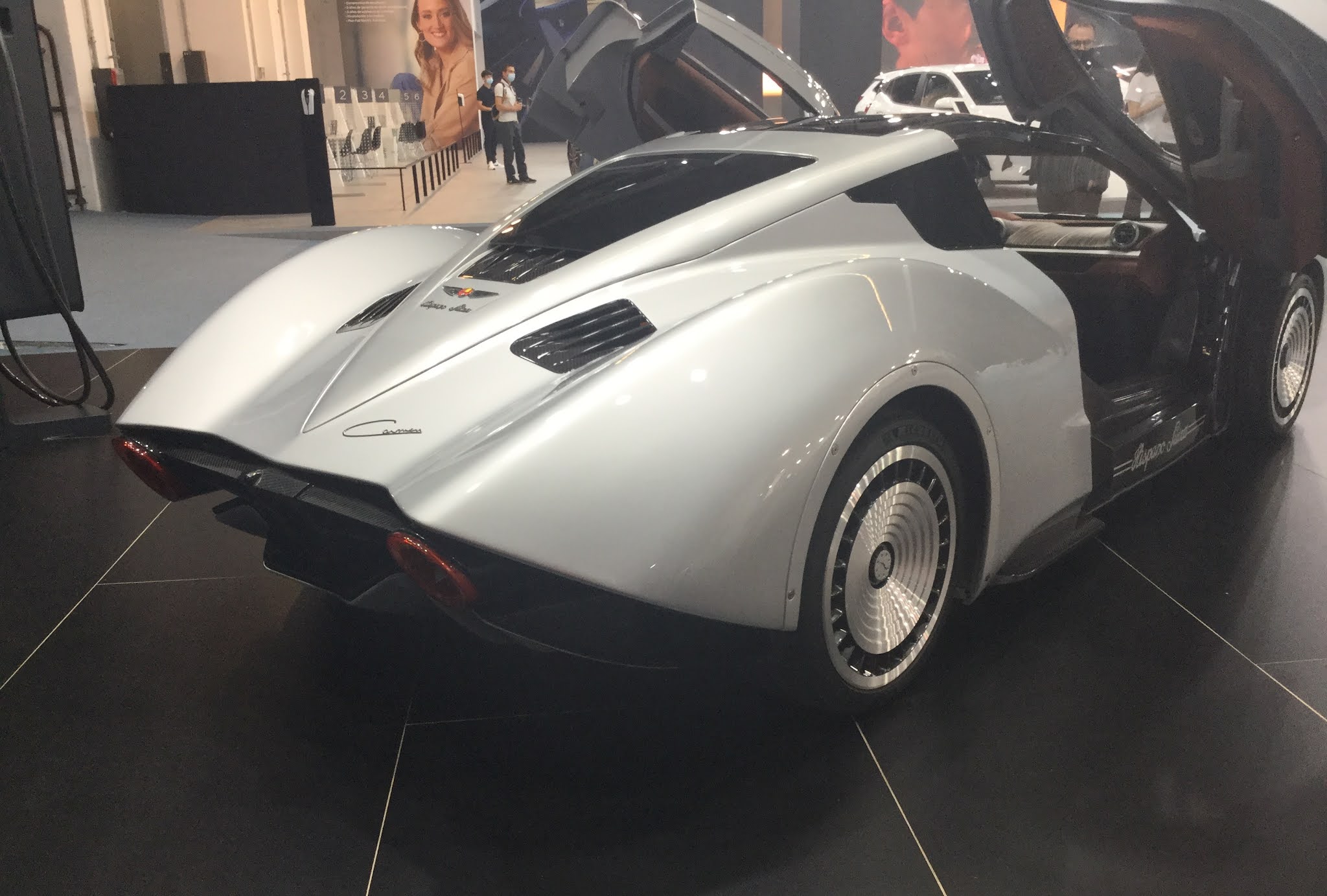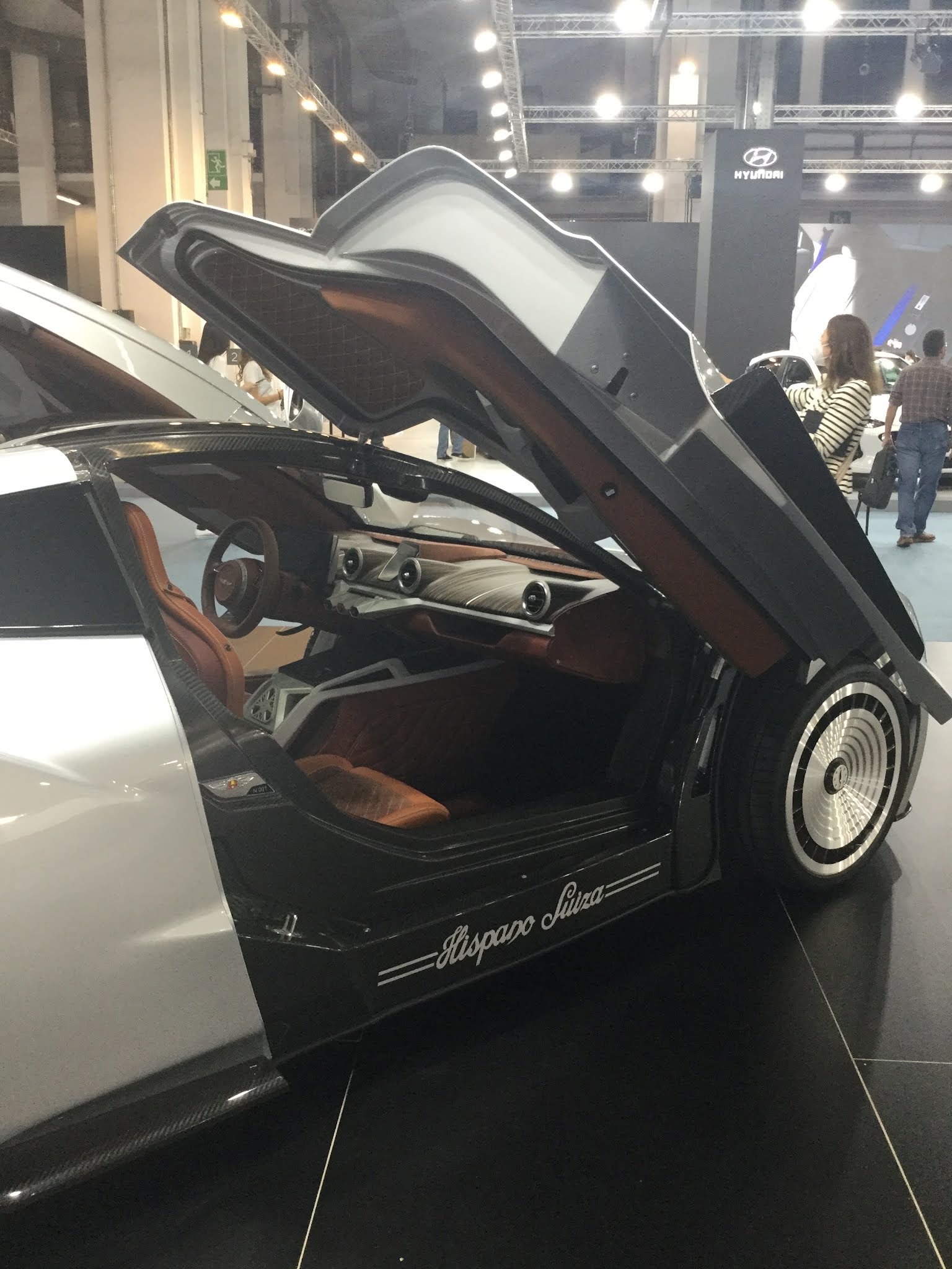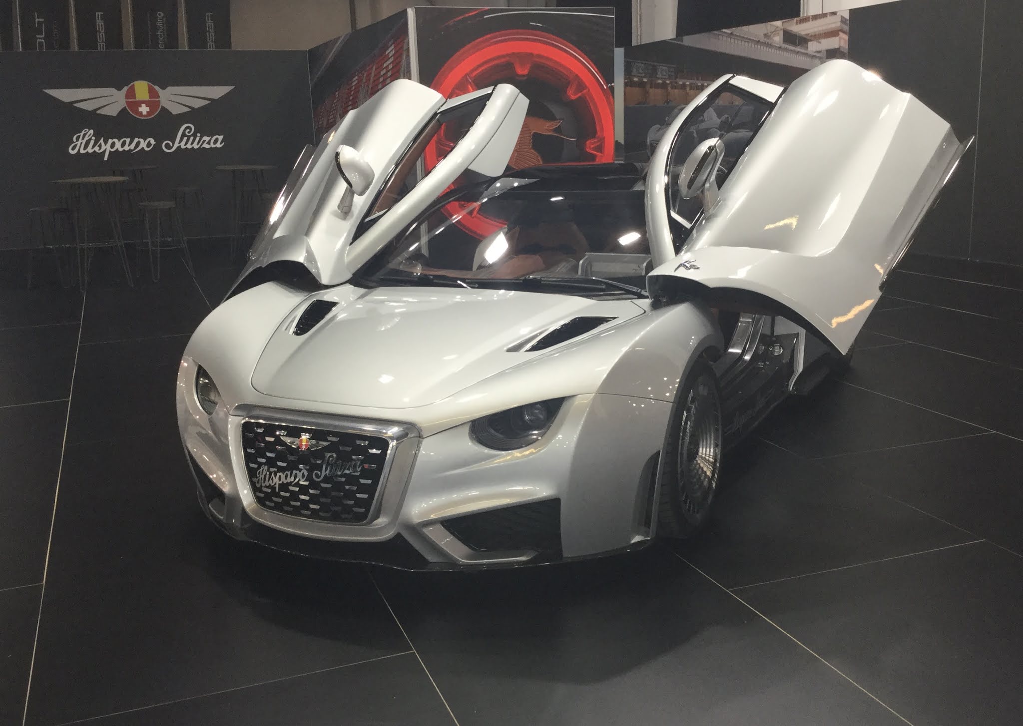 Hispano Suiza Carmen. Motorshow Barcelona. Elektroauto der Luxusklasse. Eines neues Fahrzeug ist auf dem Weg die Welt der Hypercars zu erobern. Der vollelektrische Supersportwagen (1019 PS) spurtet in 2,6 Sekunden auf 100. Wegen der Reichweite wird die Höchstgeschwindigkeit auf 250 km/h limitiert, ansonsten würde er die 300er Grenze spielend knacken.