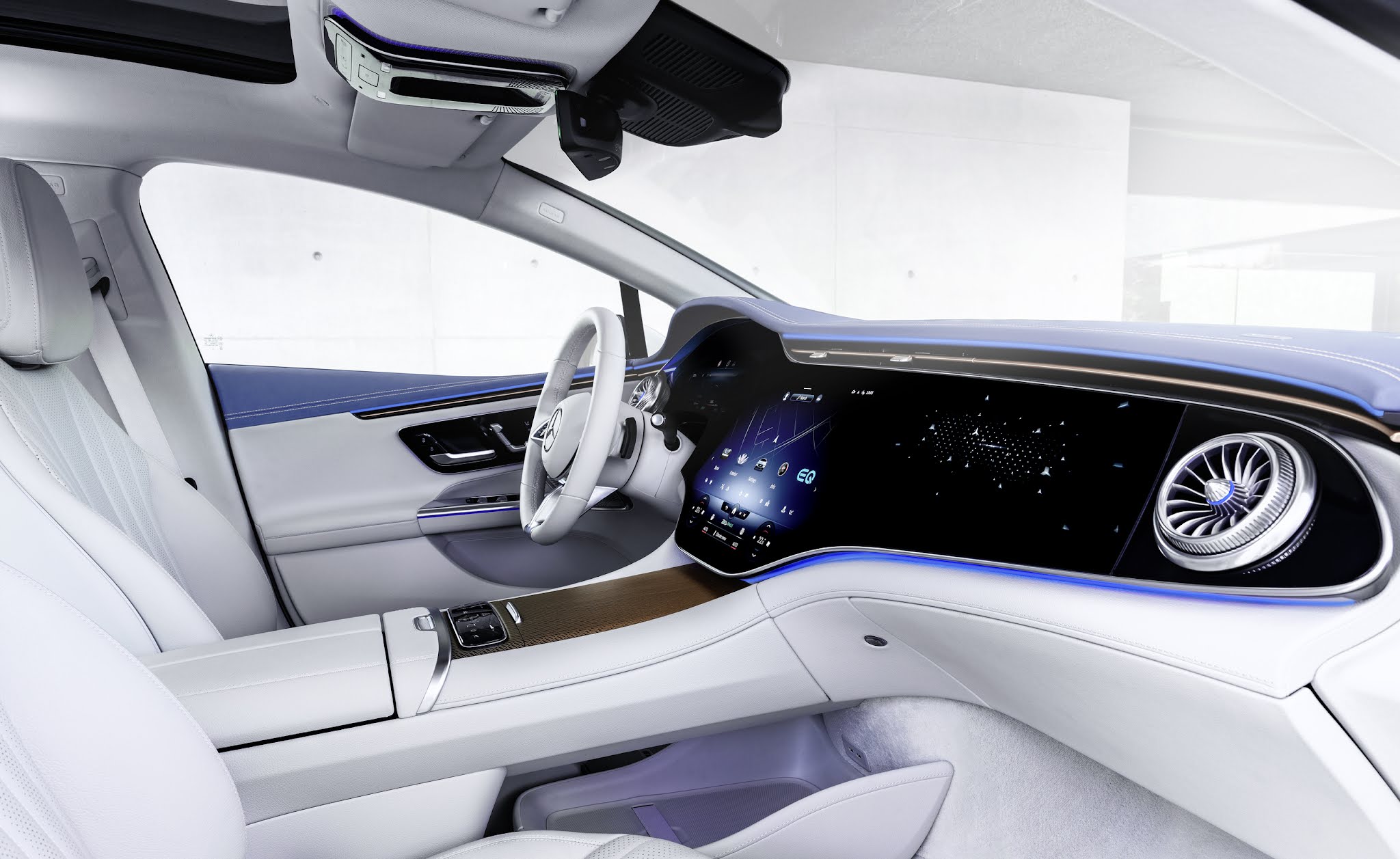 Laut Mercedes-Benz stiegen die Dimensionen im Vergleich zur aktuellen E-Klasse innen deutlich. So gibt es einen Zuwachs von 27 Millimeter bei der Schulterfreiheit, 80 Millimeter mehr beträgt die Innenraumlänge, die Sitzposition ist um 65 Millimeter höher. Bei der ersten Sitzprobe auf der IAA Mobility in München war das deutlich spürbar. Das Laderaumvolumen beträgt 430 Liter.