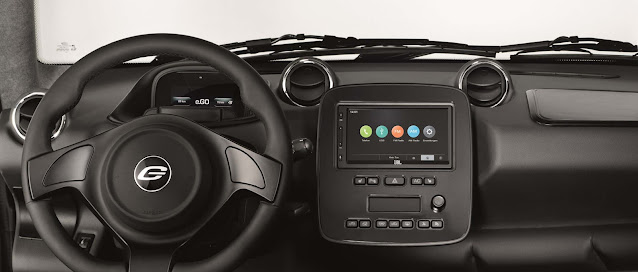 Aus besonders leichtem und robustem Kunststoffmaterial formten die Designer eine ausdrucksstarke Karosse mit muskulösen Kotflügeln. Die kommt ohne (teuren) klassischen Lack aus. Dennoch strahlen die vier Farben intensiv und brillant: