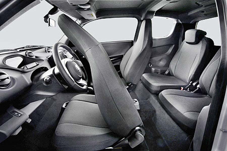 Beim ersten Kontakt sind wir schon beeindruckt, wie viel Platz er trotz betont kompakter Außenmaße innen bietet. Selbst große Passagiere stoßen mit dem Kopf nicht ans knapp 1,6 Meter hohe Dach. Auch Arm- und Beinfreiheit sind dank 1,75 Meter Breite und langem Radstand (2,2 m) völlig ausreichend dimensioniert. Auf den beiden Fondsitzen sitzen natürlich nur Kinder und Heranwachsende ordentlich bequem.