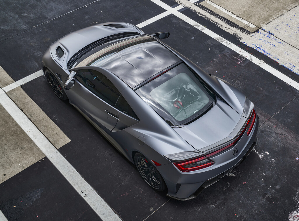 Honda Klassiker. Honda NSX Type-S. Mit seinen nunmehr 609 PS ist der 3,5 Liter-V6 potent wie nie. Die Kraft überträgt eine 9-Gang-Automatik auf alle vier Räder.
