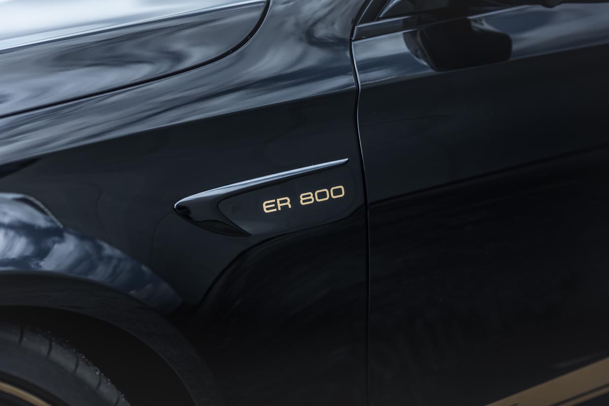 Damit der ER 800 nicht nur deutlich rasanter beschleunigt als die Basis, sondern auch noch schneller wieder zum Stillstand kommt, kommt an der Vorderachse ein Keramikbremsen-Kit mit 405×38 mm durchmessenden Scheiben zum Einsatz.