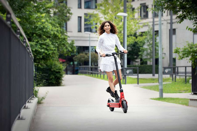| Mit dem elektrischen Kickroller komfortabel und stylish durch die Stadt fahren. |